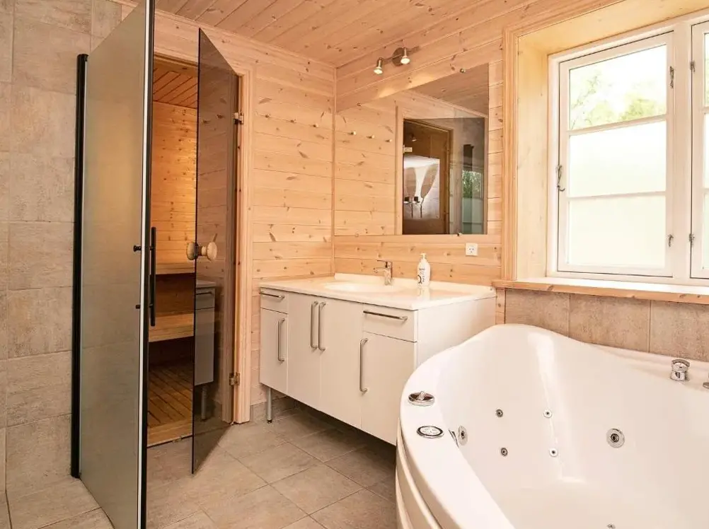 Spacious Accommodations: The 8 person holiday home in Læsø offers three bedrooms and two bathrooms, providing ample space for guests. The living room features a comfortable seating area, ideal for relaxation. Modern Amenities: Guests enjoy free WiFi, a fully equipped kitchen with a stovetop, dishwasher, and refrigerator. The property includes a washing machine, TV, and a terrace with barbecue facilities. Leisure Facilities: A sauna and terrace enhance the relaxation experience. The spacious layout and pet-friendly environment cater to all guests. Local Attractions: Storedal Beach is located 1.9 mi away, offering scenic views and opportunities for leisure activities. Aalborg Airport is 58 mi from the property. Highly rated by guests.